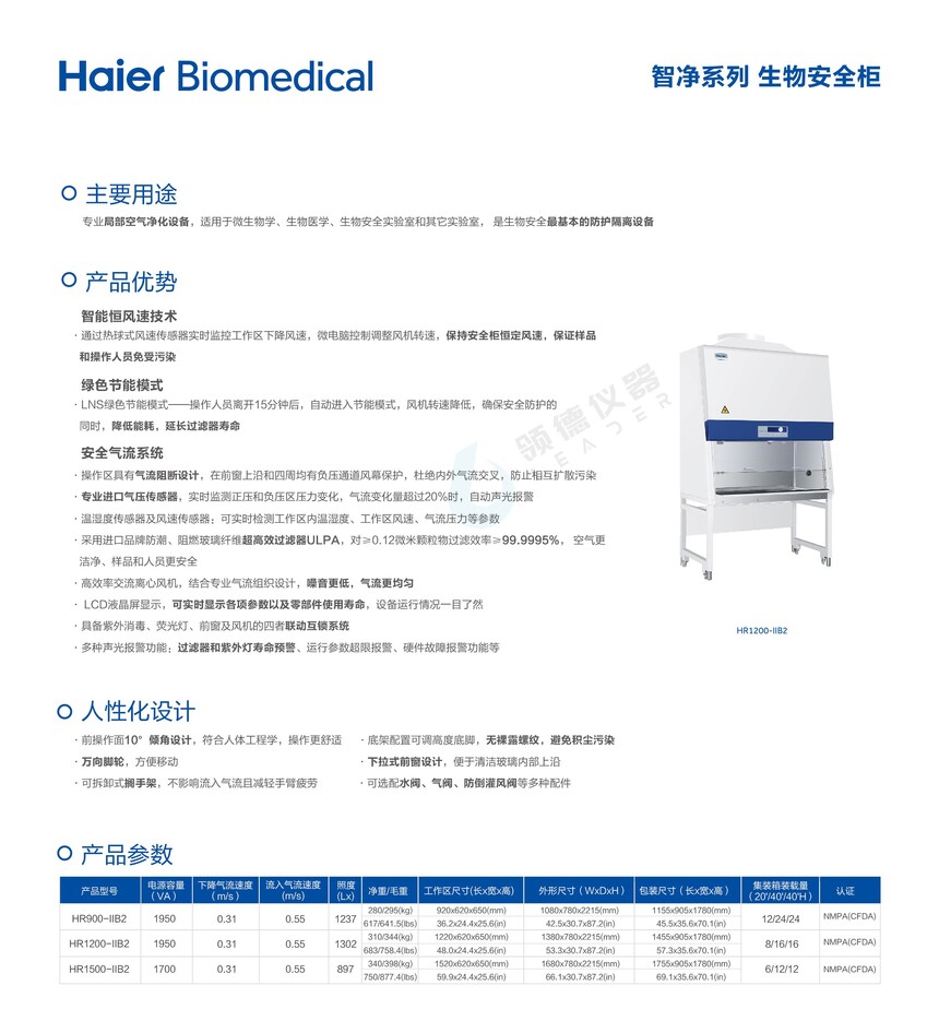 海尔Ⅱ级生物安全柜HR1200-ⅡB2