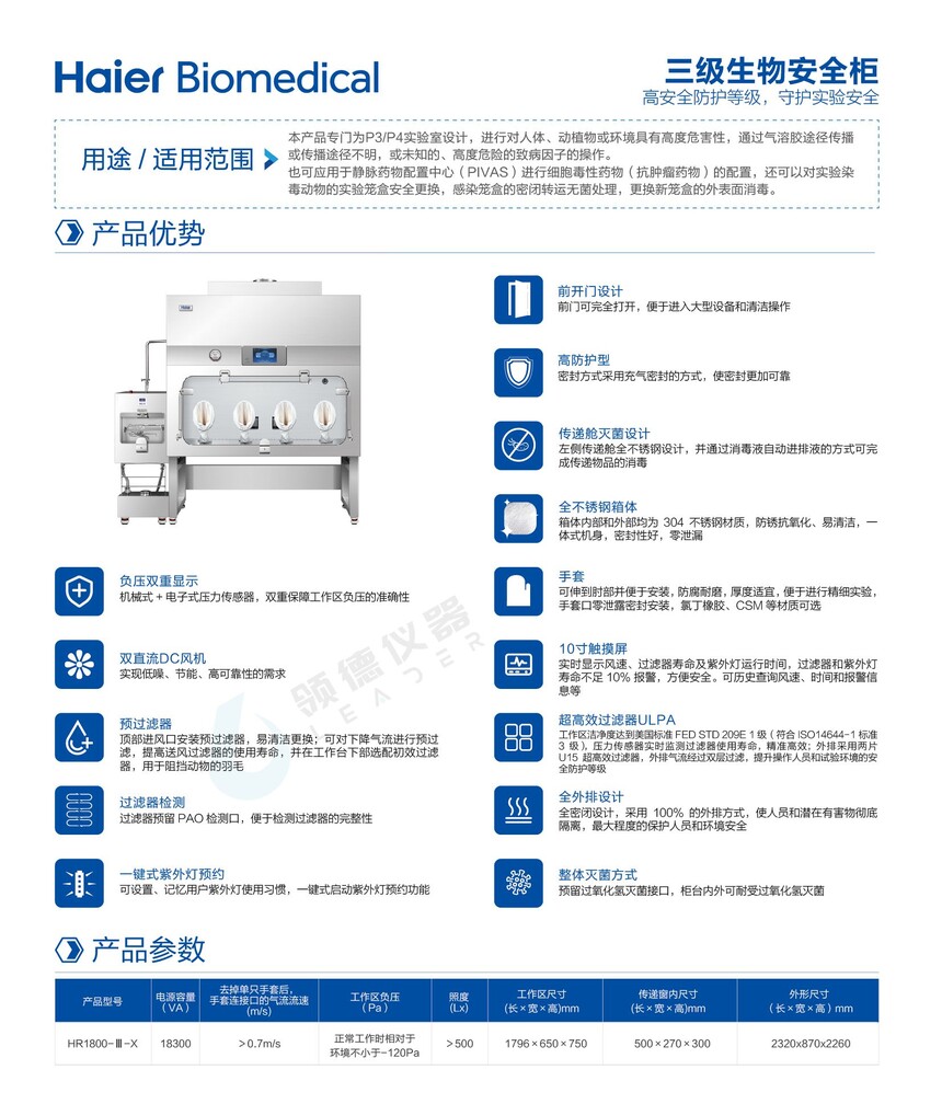 海尔Ⅲ级生物安全柜HR1800-Ⅲ-X